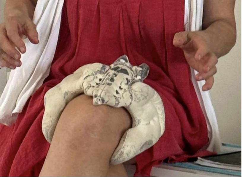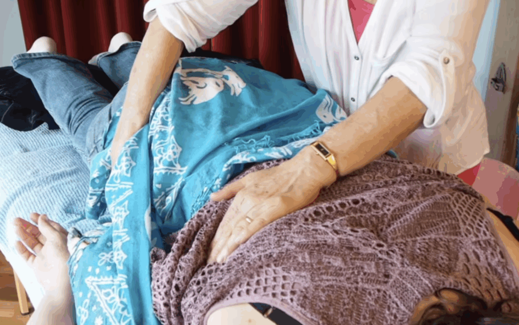 A way to relieve the pelvic torsion from the twisting injuries that we may have had in whiplash’ or in any untowards movement that he body has not unwound from – for upper and lower body – the fulcrum is the womb’s placement in the pelvis – via the Ovarian Suspensory Ligament – the lynch pin of all of the Gentling Way work.