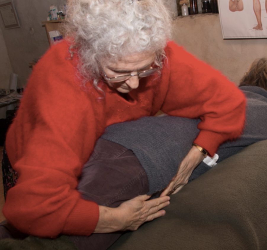 - How to do it – They are up against your body – right on the edge of the table. You are going to take their leg for a walk – and in ONE plane – not lifting it also – straight back – most important. Warn them of what is happening – and to let go . . can’t force this. If too stuck – go back to this – after more massage, get them up to GB bash, steam, needle – whatever . . Take a breath. Working hand starts on the edge of the hip.