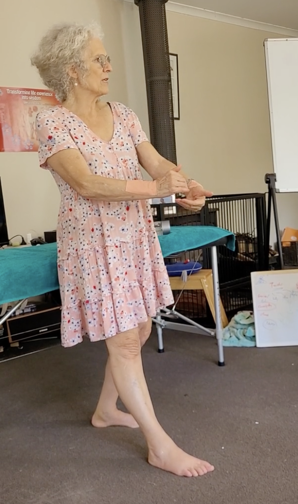 We use presence, our own breath and respectful clarity to enhance the moves that Heather’s Gentling Ways appears this is all about – as it is not: but the willingness in safety, of the body to relinquish its secrets, to move into ease.