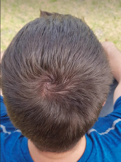 Jing? (CLICK). My eldest, who had an almost bald 29 yo father. My father was balding from 15 yo. My mother had alopecia.